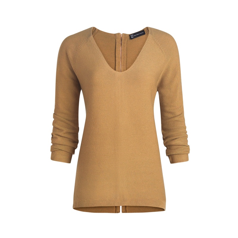Zip-Back V-Neck Sweater NATURAL – CLASSIC CAMEL
