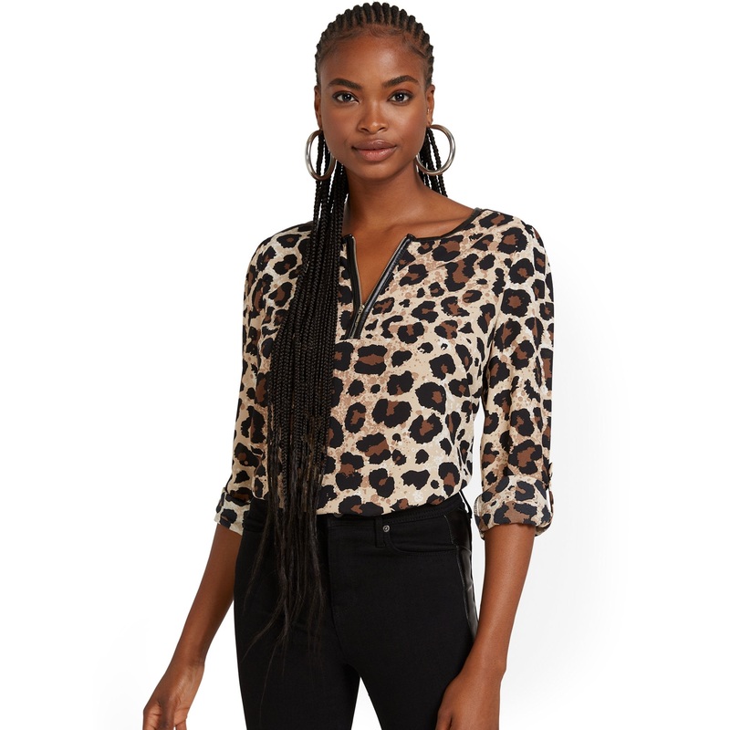 Zip-Front Blouse – Leopard BLACK – BLACK