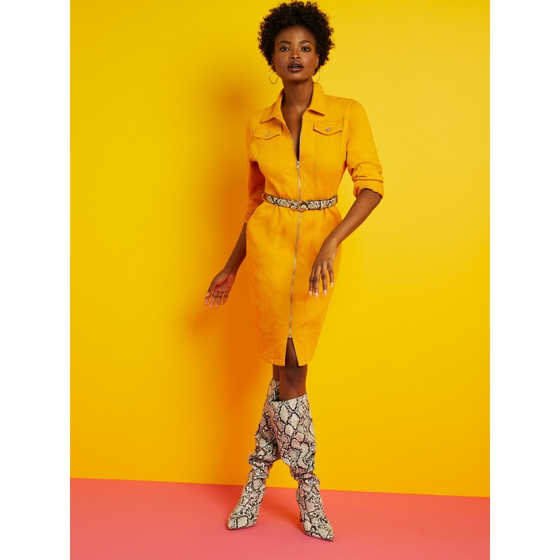 Zip-Front Denim Dress – Gold YELLOW – GOLD EXCHANGE