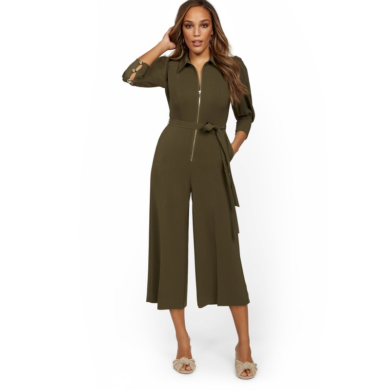 Zip-Front Wide-Leg Jumpsuit GREEN – WOODLAND GREEN