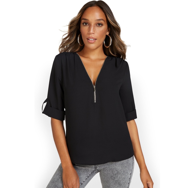 Zip-Front Tunic Top – NY&C Style System BLACK – BLACK