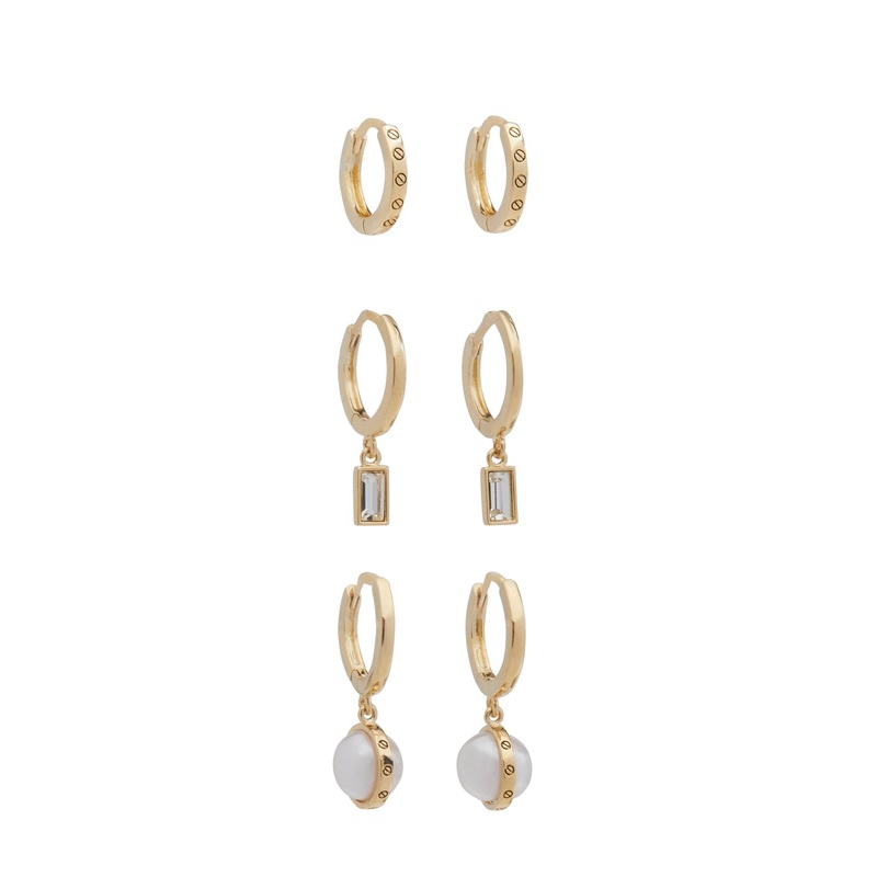 14K Gold 3 Piece Pearl Huggies Set YELLOW – GOLD