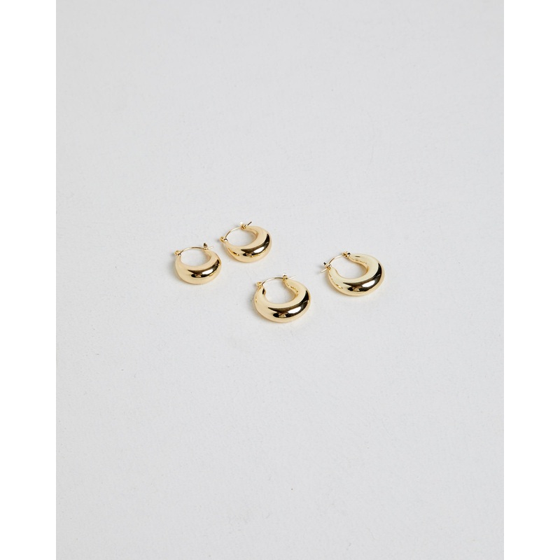 14k Classic Hoops Set Plated GLD