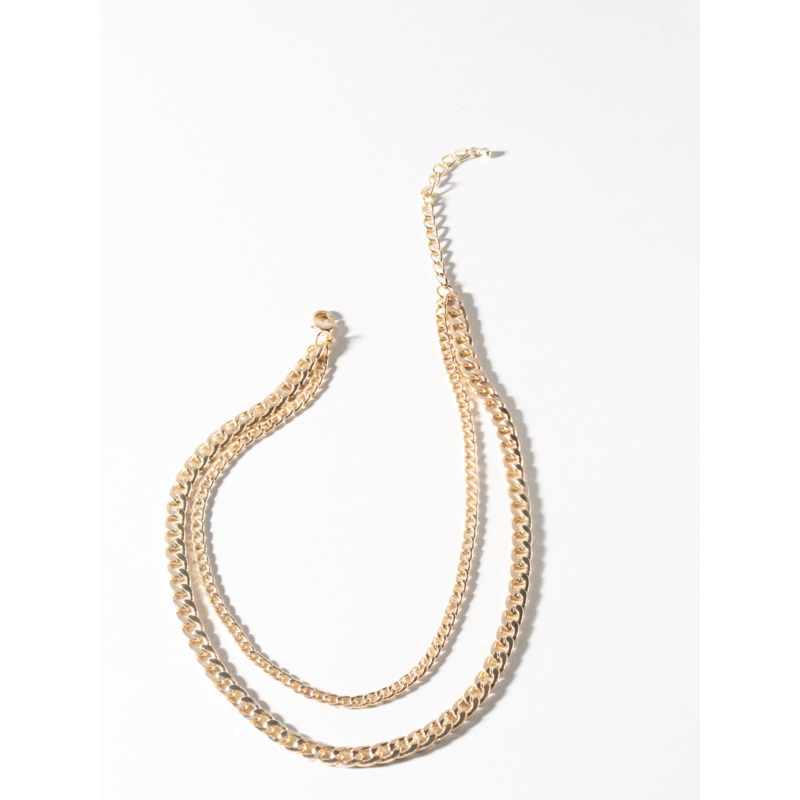 14K Gold Double Layer Mixed Chain Necklace YELLOW – GOLD