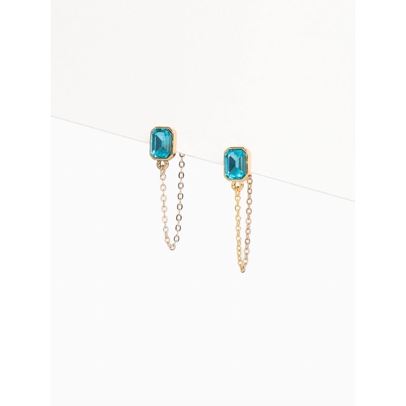14K Gold Plated Baguette Chain Detail Stud Earrings BLUE – AQUA MIST