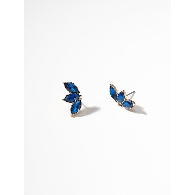 14K Gold Plated CZ Flower Stud Earrings BLUE – NAVY