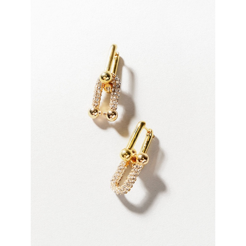 14K Gold Plated Pav U-Link Drop Earrings YELLOW – GOLD