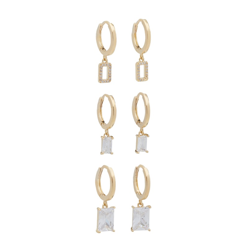 14K Gold Plated CZ Square Huggie Set YELLOW – GOLD