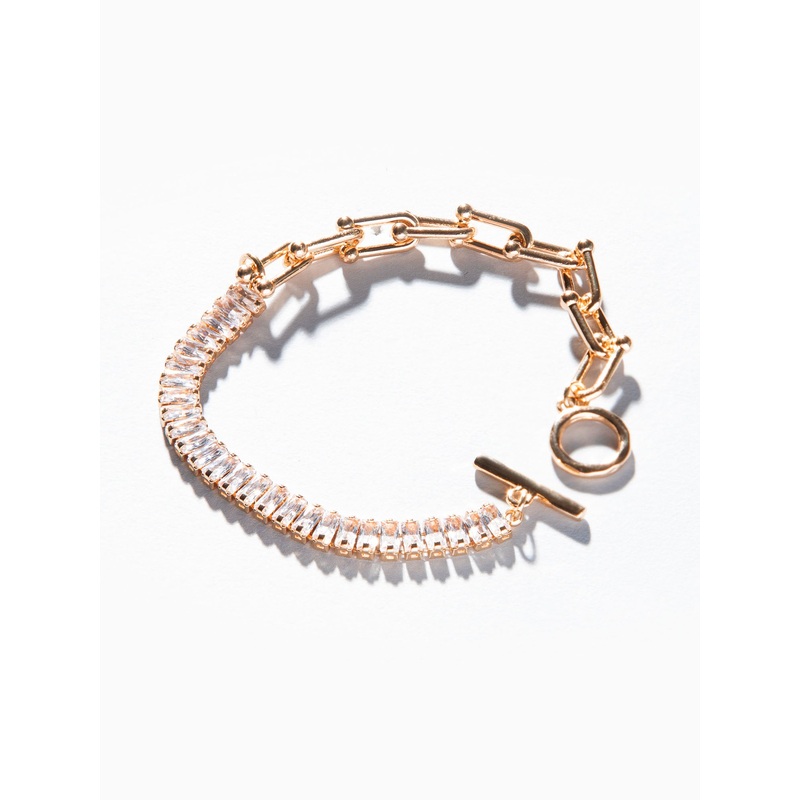 14K Gold Plated Link Chain Baguette Bracelet WHITE – CLEAR