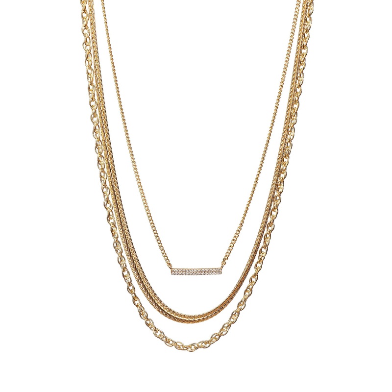 14K Gold Plated Layered Pav Bar Necklace YELLOW – GOLD